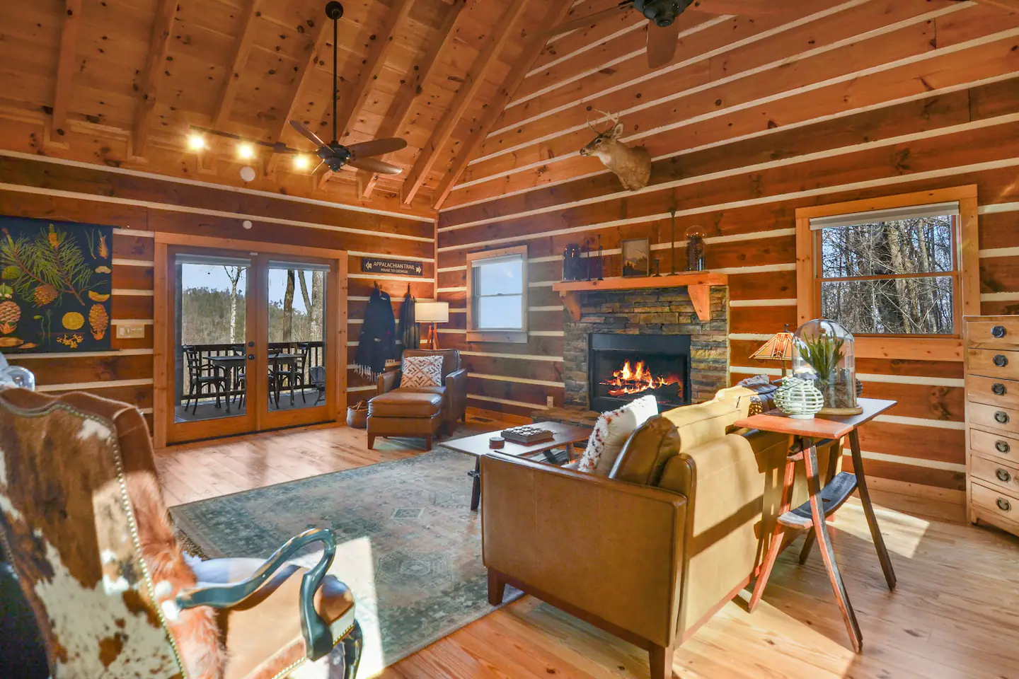 Mountain Serenity, a hidden gem amongst the enchanting landscape of the Blue Ridge Mountains! Our log cabin redefines the meaning of mountain living, offering a genuine escape into a world of serenity and natural beauty with luxurious comforts of home. As you enter, the authenticity of the chink wood construction and the high vaulted ceilings set the stage for an unforgettable stay. Every corner of this cozy retreat invites you to relax and create lasting memories. Cozy up by the stone fireplace or step outside onto your private balcony & hot tub to immerse yourself in panoramic views of the majestic Cohutta Mountains. Book now to experience mountain living at its finest!