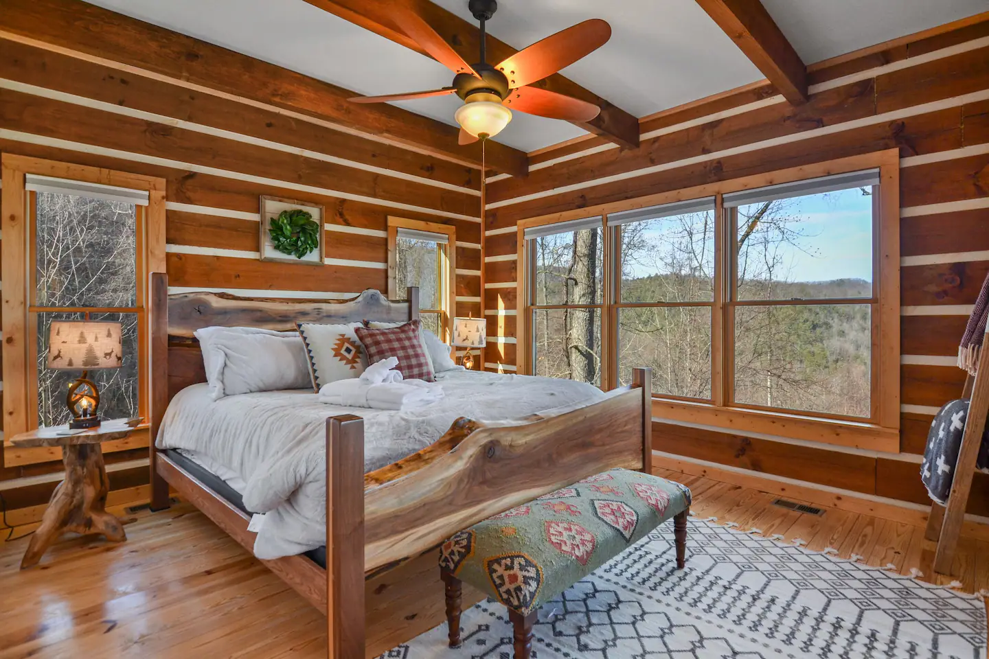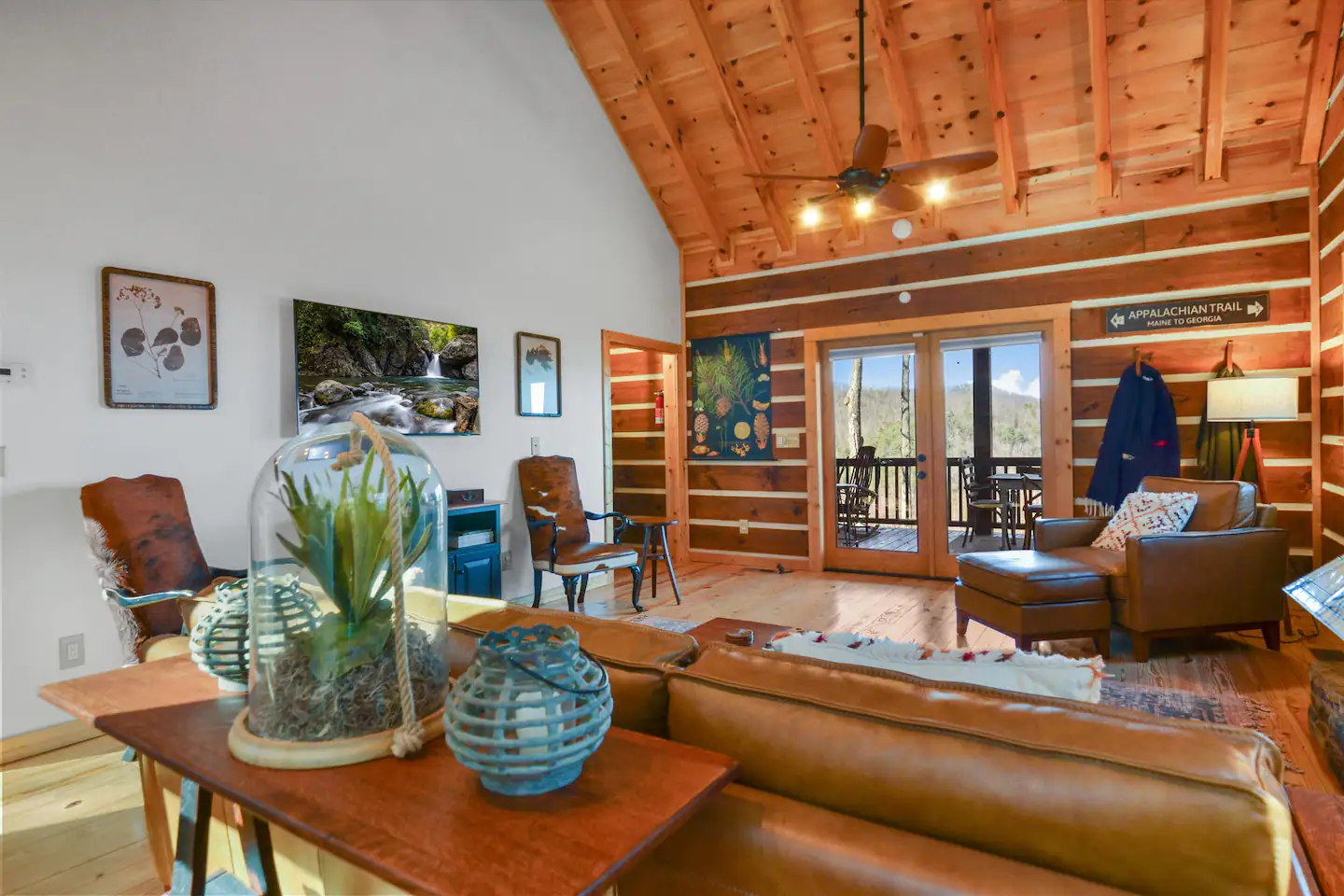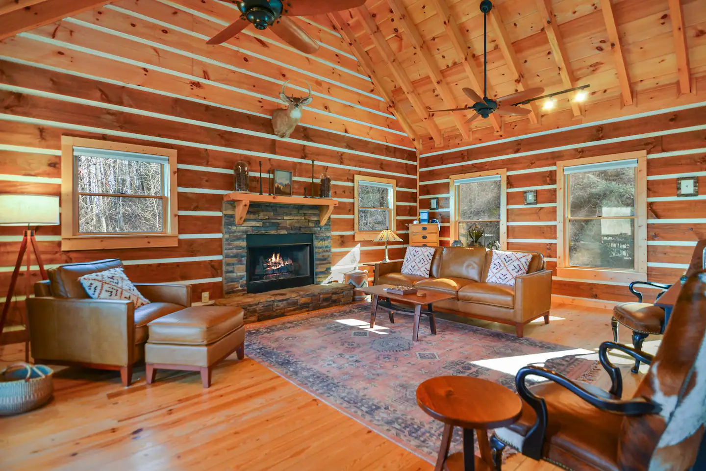 Mountain Serenity, a hidden gem amongst the enchanting landscape of the Blue Ridge Mountains! Our log cabin redefines the meaning of mountain living, offering a genuine escape into a world of serenity and natural beauty with luxurious comforts of home. As you enter, the authenticity of the chink wood construction and the high vaulted ceilings set the stage for an unforgettable stay. Every corner of this cozy retreat invites you to relax and create lasting memories. Cozy up by the stone fireplace or step outside onto your private balcony & hot tub to immerse yourself in panoramic views of the majestic Cohutta Mountains. Book now to experience mountain living at its finest!